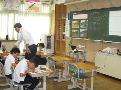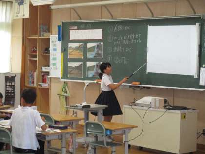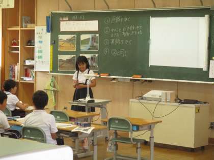 算数の学習で分度器を使って、三角形をかきました。できた三角形を友達と紹介し合いました。