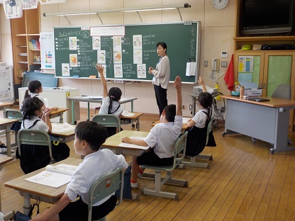 1年生は、片付けや食べ方、学習の仕方などの基本的な生活習慣を守ると、どんないいことがあるか話し合いました。たくさん手が挙がりました。