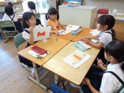 今日は、先日クロムブックで描いた絵を友達に見せながら、自分の好きなものについて話しました。