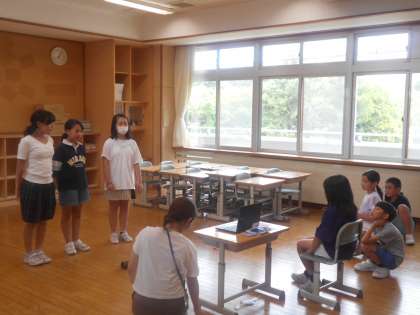 集会ではクイズを楽しみ、集会後は縦割りグループで、互いに七夕のお願いについて聴き合いました。