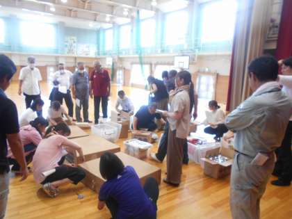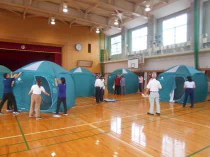 富山市職員、地区センター、地域の皆様、本校教職員とで、災害時に備えた避難所開設訓練を行いました。