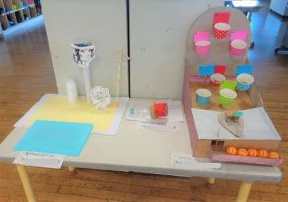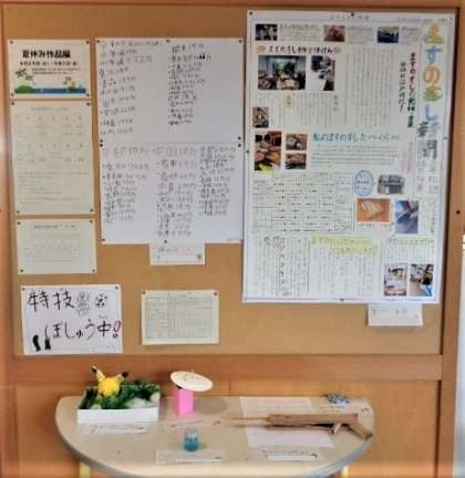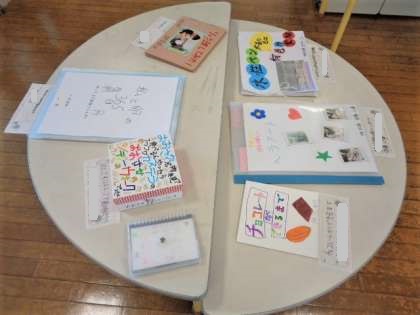 夏休みに行った作品が教室前に展示してあります。どの作品も子供たちのがんばりが感じられました。