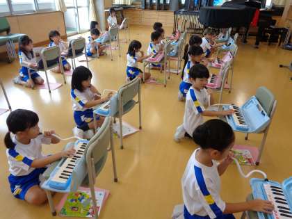 鍵盤ハーモニカの学習をしています。 「ドレミファソ」を、どの指で押さえるか気をつけながら演奏を頑張っています。