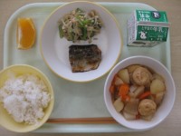 今日の献立は、子供たちが大好きなカレーライスです。カレーには可愛い形のにんじんが入っていて、うれしい気持ちになりました。ウインナー、フルーツカクテルもおいしかったです。