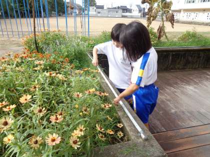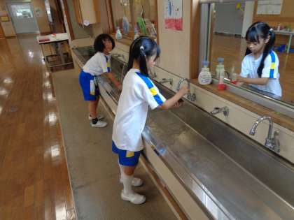 花壇の草むしりや、洗面所磨き、図書コーナーの掃除等、自分でしたいことを見付けて活動しています。