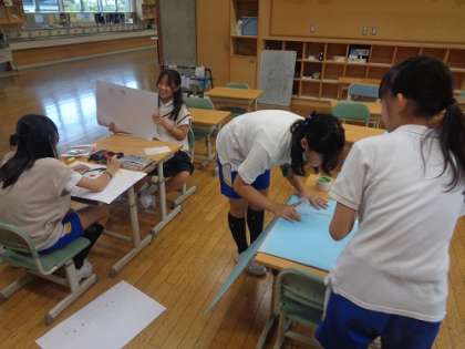 小道具をつくったり、発表の演出の仕方を考えたりしながら練習を進めています。