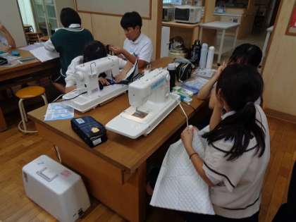 今日の家庭科では、手提げカバンに持ち手をつけるところまで製作を進めました。地域の方がゲストティーチャーとして、ミシンの使い方について丁寧に教えてくださっているおかげで、安全に楽しく活動ができています。