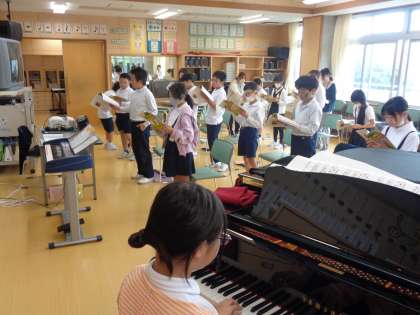 音楽の時間に、友達の伴奏で歌を歌いました。休み時間に一生懸命練習してくれた伴奏に乗せて、きれいな歌声を響かせることができました。次回の音楽の時間も楽しみです。