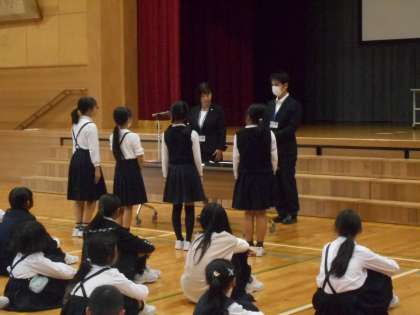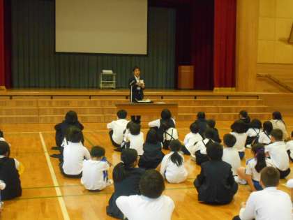 また、岩瀬小の子供たちの下校を見守ってくださっている「岩瀬っ子見守りたい」が「防犯功労団体表彰」を受け、これまでの活動が表彰されたことも、全校に紹介しました。