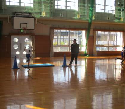 今日から体育で高跳びを始めました。踏切の足を合わせ、高く跳ぼうと一生懸命取り組んでいました。