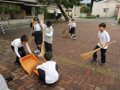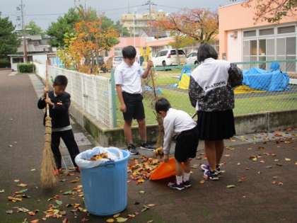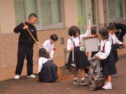 昨日からの強風で校庭にたくさんの木の葉が落ちました。登校した児童が進んで清掃活動をしてくれています。ボランティア清掃をしてくれる子供たちが増えてきました。