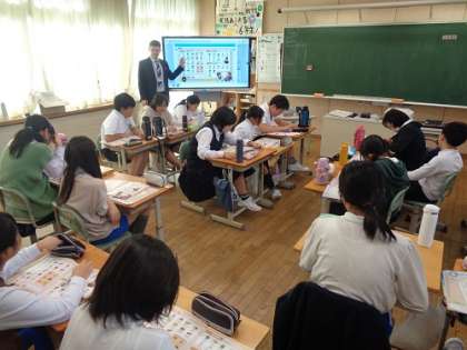 11月8日(水) 6年 外国語 公開日 2023/11/08 更新日 2023/11/08 6年生 今日は様々な食品を表す英語を発音しました。広告のイラストを見て、産地について英語で答える場面もありました。