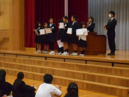 大会でがんばった児童が表彰されました。