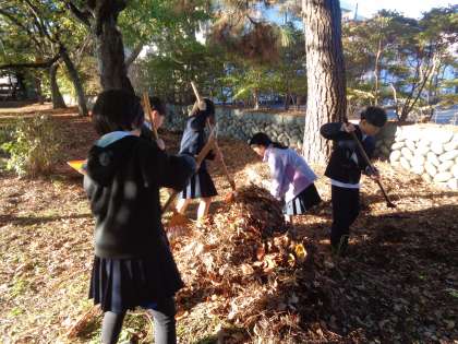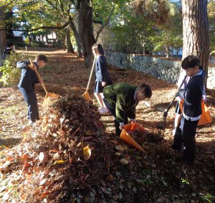 登校後、落ち葉集めのボランティアに参加する子が増えました。