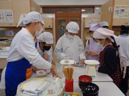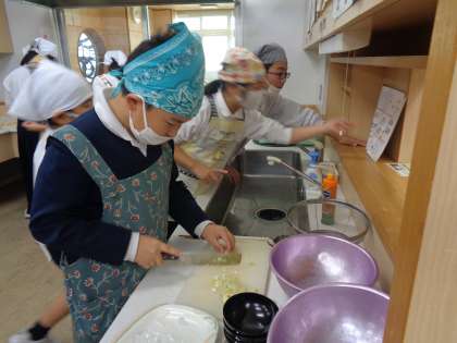 調理実習で煮干しで出汁をとったみそ汁を作りました。