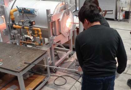 富山ガラス工房の第2工房にて、卒業記念のペーパーウェイトを制作しました。職員の方の説明をしっかり聞いて、安全に活動を行いました。