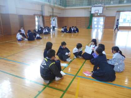 縦割りファミリーで、互いの自主学習を紹介し合いました。