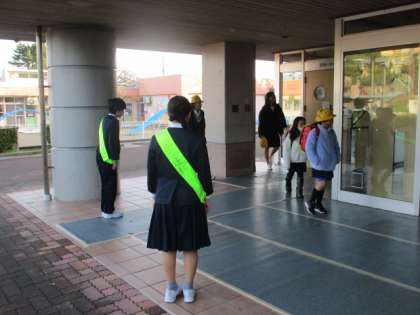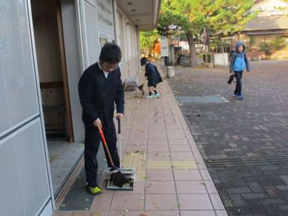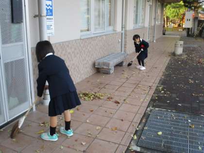 今朝は、5年生の運営委員が朝の挨拶運動をしてくれました。とても元気な声で、朝から爽やかな気持ちになりました。また、校庭の落ち葉を掃除してくれる5年生と1年生の姿がありました。進んで活動する姿は、とてもすばらしいです。うれしい気持ちになりました。