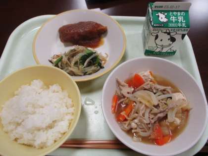 今日の献立は、ごはん、牛乳、揚げ魚のみぞれだれ、昆布和え、白菜鍋です。みぞれだれがとても美味しかったです。