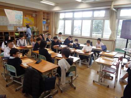 総合的な学習の時間に、卒業お祝いプロジェクトを始めました。6年生が笑顔で卒業できるように、5年生が自分たちで司会や記録をしながら話し合いを進めています。