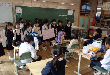 昨日、2年生の「おもちゃパーティー」で遊ばせてもらったので、そのお礼のメッセージを渡しに行きました。2年生に喜んでもらえて、1年生も嬉しそうでした。