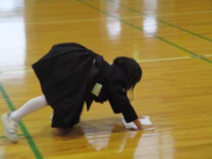 今朝は1年生の児童が体育館のぞうきんかけをしてくれました。みんなのために働く姿はとても立派です。ありがとう。