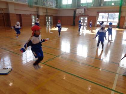 長縄は、12月から練習を始め、3分間で100回跳ぶことを目標に取り組んできました。今日は初めて100回を超える107回と言う記録が出て、みんなで喜びを分かち合いました。
