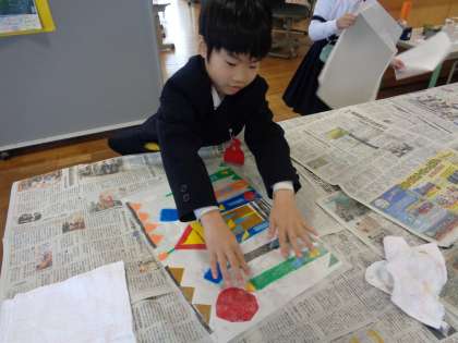 「本当に色がついた!すごいね!」「しっかり押さえた方が濃い色になるみたい」等と友達と伝え合いながら楽しむ姿が見られました。