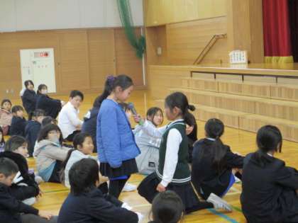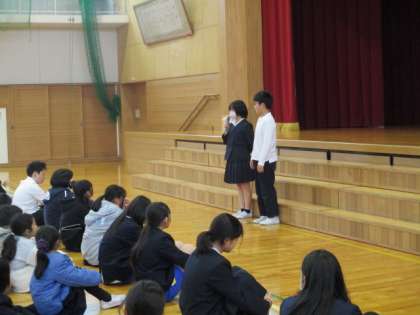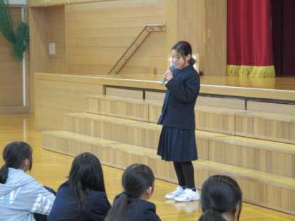 1月の岩瀬タイムをしました。集会委員会の進行が回を重ねるごとに上手になってきました。集会では、今月の歌「世界中の子供たちが」を全校で元気に歌いました。