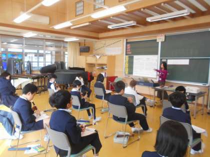 5年生の音楽科の学習では、リコーダーでの「威風堂々」の練習が始まりました。
