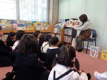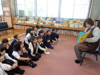 素話で「ねずみのすもう」を聞かせていただいたときには、お話の世界に聞き入っていました。そのほかにも、絵本を4冊紹介していただき、楽しい時間を過ごしました。