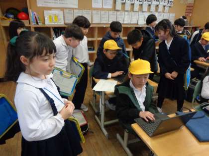 クラブ見学をしました。見学時間は短かったですが、活動の様子を興味深く見ていました。