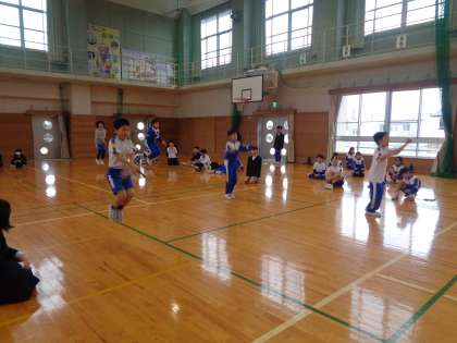 短縄跳び大会を行いました。子供たちは全9種目の技の中から挑戦したい技を選び、大会に出場しました。自分の記録を伸ばすために、チャレンジタイムや休憩時間等に練習を重ねてきました。今日はその成果を出すことのできた人、悔しい思いをした人もいたと思いますが、それまでの過程で見せてくれた一人一人の姿が素敵でした。