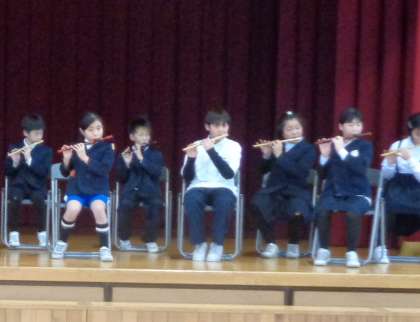 2月27日(火) 4年生 創校記念式に向けて 公開日 2024/02/27 更新日 2024/02/27 4年生 創校記念式に向けて体育館で横笛の練習をしました。入退場や演奏など本番を意識して頑張っています。