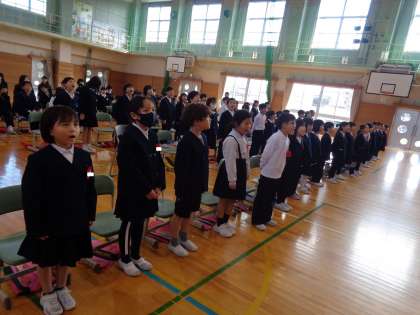 1年生は創校記念日の歌を歌ったり、まだら踊りを踊ったりと、真剣に参加していました。