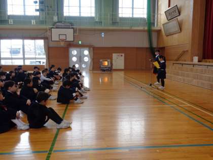 修了式を行いました。校長先生の話や代表の児童の話を聞きながら、1年間でできるようになったこと、自分が頑張ってきたことを一人一人が振り返っていました。