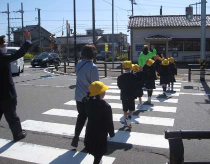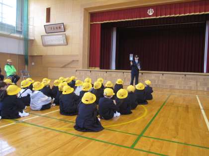 1年生と2年生で、交通安全教室を行いました。中央警察署の方から、道路の安全な歩き方について教えていただきました。左右をよく見る、手を上げて渡るなどの交通ルールを確認し、横断歩道を渡りました。