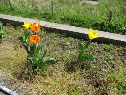 暖かい日差しが気持ちのよい一日です。花壇のチューリップが可愛い花を咲かせています。今日の献立は、コッペパン、牛乳、豆とかぼちゃのコロッケ、ピクルス、クリームチャウダーです。