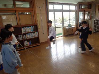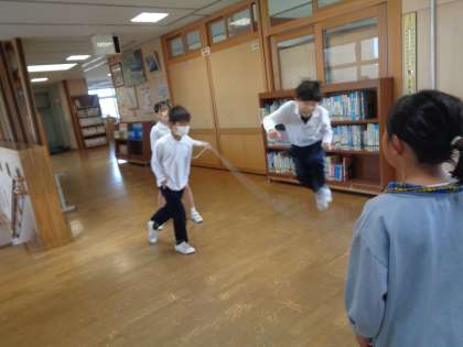今日のチャレンジタイムは長縄跳びにチャレンジしました。とっても上手で、チャレンジタイムの時間内に1000回以上跳んでいました!すごい!
