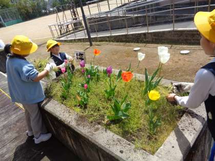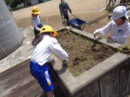 理科でヘチマを育てるために、花壇の草むしりをがんばりました。朝の時間を使ってこれからも草むしりをしたいと、花壇の整備に意欲的になってくれていました。
