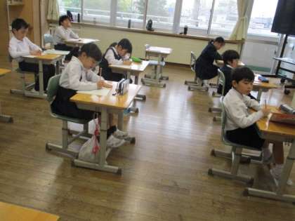 朝の10分間は全校「ぐんぐんタイム」に取り組んでいます。火曜日は、漢字や計算などの学習に取り組みます。3年生は、新しく習う漢字の練習をしていました。