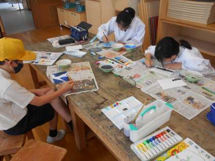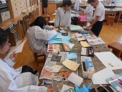図画工作科の学習で、色々な技法を使って、たくさんの気持ちを込めた心のもようを製作しました。