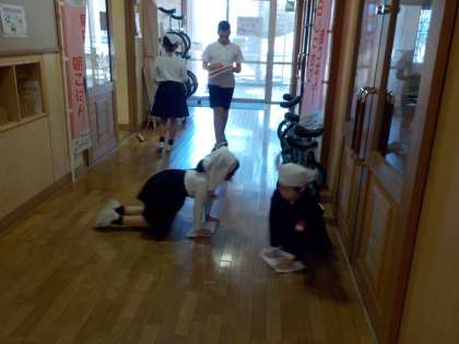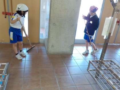 今日から縦割り班での清掃が始まりました。6年生を中心に、役割分担をし、班で協力して仲良く清掃に取り組みました。