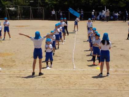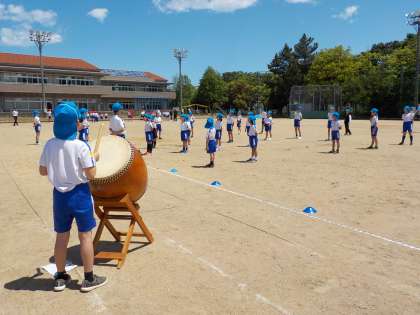 青団の応援練習風景です。間隔をとり、隊形がとても美しいです。