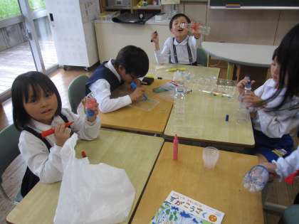 たまごのパックやプリンカップ等、自分で選んだものに色を塗りました。晴れる日が楽しみです。