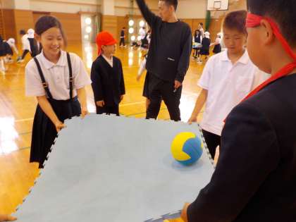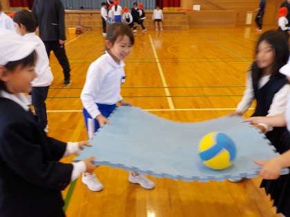 ボールが落ちそうになると、高学年が中心となって「もっと持ち上げて!」などと声をかけ合っていました。