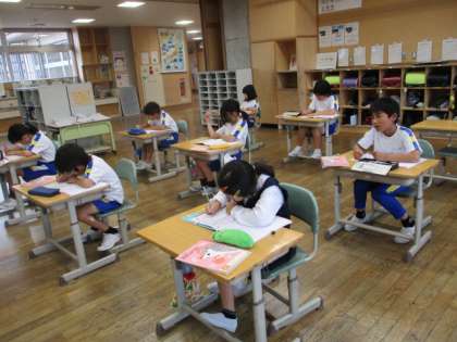 火曜と木曜のぐんぐんタイムは、漢字や計算に取り組みます。3年生、4年生の教室では漢字の学習に取り組んでいました。新出漢字を練習したり、小テストで学習した漢字の確認をしたりしています。