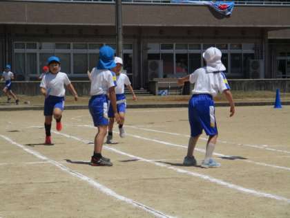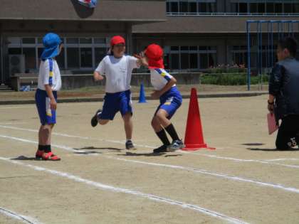下学年リレーです。バトンをつないで、一生懸命に走りきりました。
