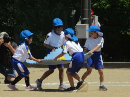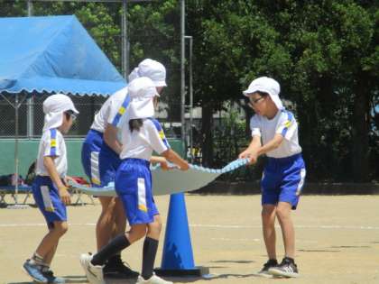今年度の運動会は、久しぶりの午後までの開催としました。午後の種目は、得点を競うのではなく、仲間と心を合わせて運動を楽しむ競技にしました。ファミリー班で「みんなで運べ!岩瀬魂!」を楽しみました。