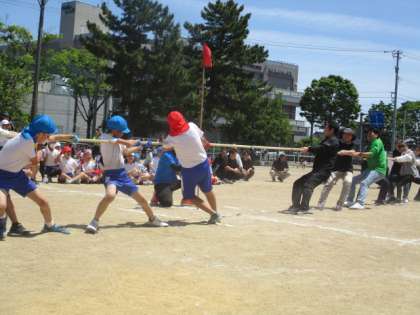 育友会のみなさんと一緒に綱引きを行いました。協力してくださった育友会のみなさん、ありがとうございました。